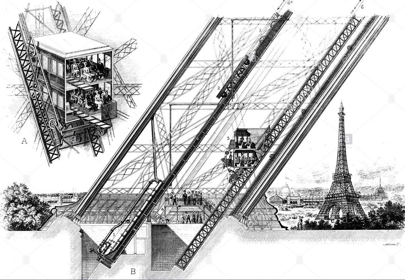 - Uno dei primi progetti dell’ascensore della Tour Eiffel della Otis Company